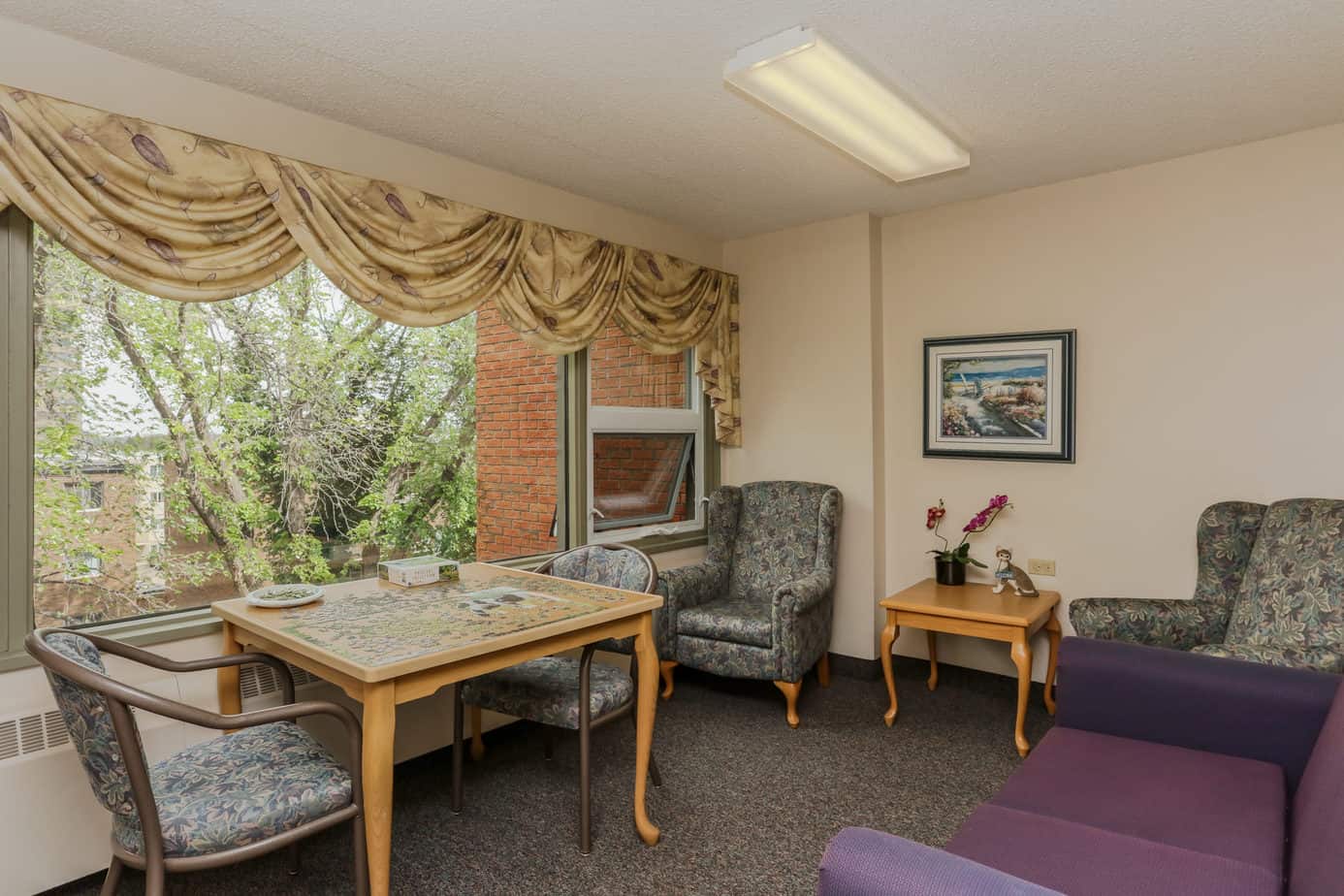 Bateman Manor has 51 clean, secure and homey suites. Tenants can meet for coffee every morning in the social room on the main floor. The social room is also used for other activities like movie nights, computer classes, health clinics, puzzles, bingo and games on Nintendo Wii. Tenants can keep active by using the exercise room, or they can enjoy some quiet time reading or using the computer in the library on the second floor. Environmentally-friendly laundry equipment are available to our tenants on the second, third, and fourth floors. Outside is a colourful garden where tenants volunteer their skills and their time to take care of the plants. When not gardening, they can relax on the patio, enjoy the barbecue and listen to the beautiful birds chirping away.