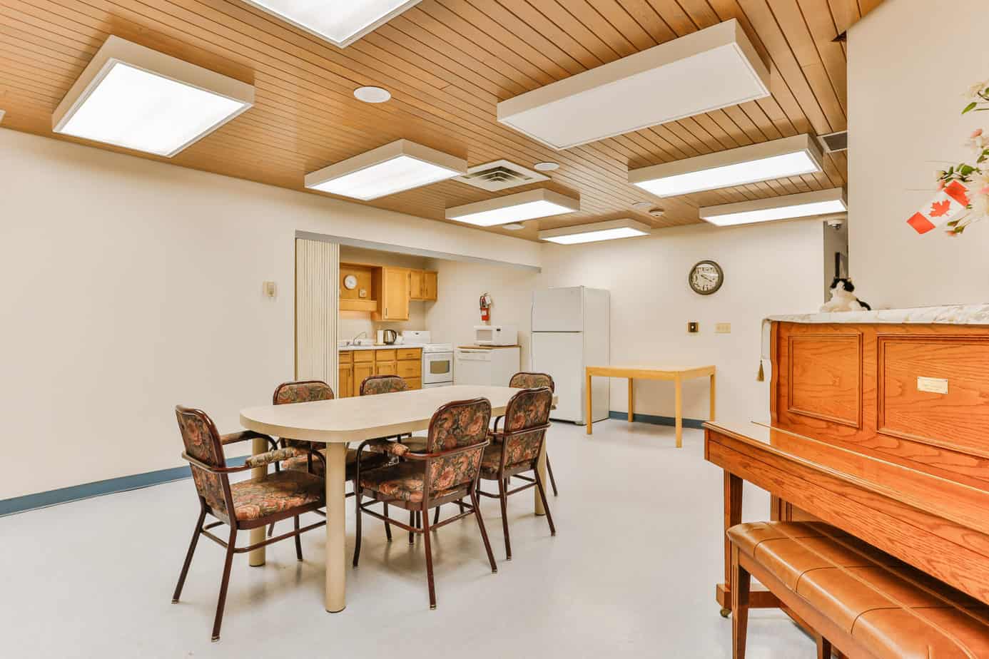 65+ Age Restriction, Accessible Suites, Bathtub, Bus For Outings, Certified Crime Free Program, Courtyard, Designated Smoking Area Outdoors, Elevator (2), Exercise Equipment, Fridge Apartment Sized, Garden Boxes, Heat Included, Laundry Faciliites $, Library, Non-Smoking, Pet Friendly, Recreation Program, Recreation Room, Resident BBQ, Resident Kitchen, Stove, Sunroom, Surface Parking, Water Included
